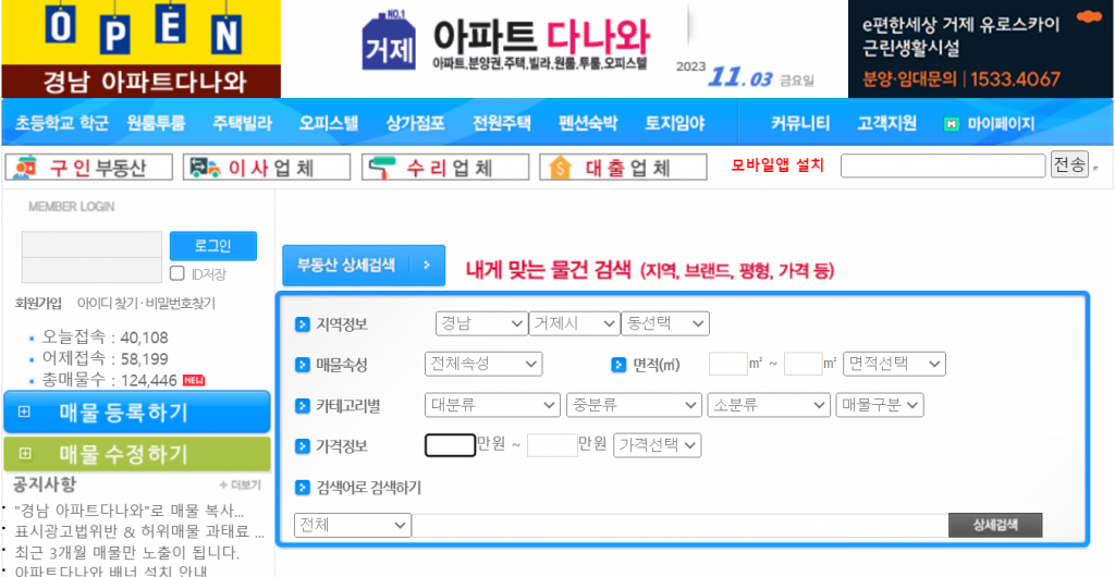 그러나 지방에는 지방 특화 사이트도 많이 존재합니다. 이번에는 거제 지역을 중심으로 하는 "거제부동산다나와"라는 홈페이지를 소개하려고 합니다.