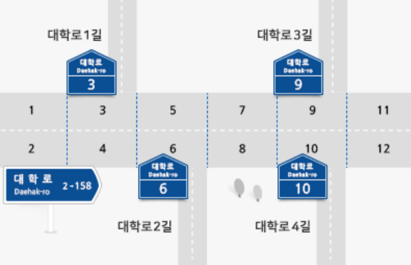 도로명 주소는 위와 같은 구성으로 되어 있습니다. '도로명' + '건물번호' 로 구분이 되어 있습니다. 하지만 이 건물번호는 어떤 원칙으로 구성이 되어 있을까요?