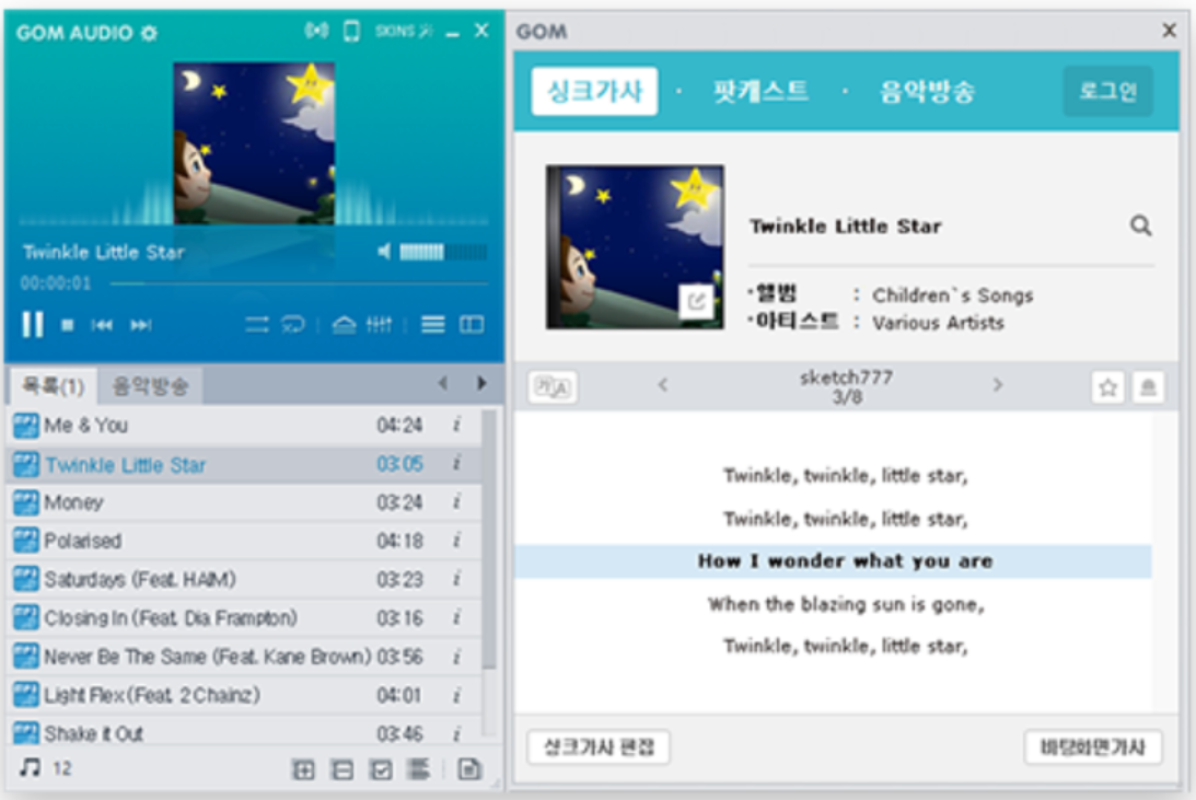 윈도우 기본 프로그램도 많이들 이용하기는 했지만, 그래도 여러가지 플러그인이나 기능들이 있어서 전용 프로그램을 이용했지요. 가사가 나와서 그랬던것 같아요.