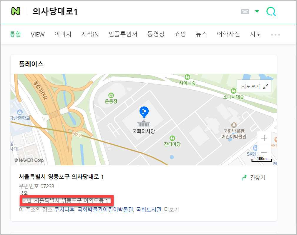 꼭 이런방식으로 이용하지 않아도 쉽게 이용하는 방법이 있습니다. 네이버에서 입력을 하게되면 지번이 위 이미지처럼 나오게 됩니다. 딱히 별도의 사이트를 이용하지 않고, 네이버나 다음과 같은 포털을 통해서도 쉽게 확인이 가능한 부분이 있습니다.