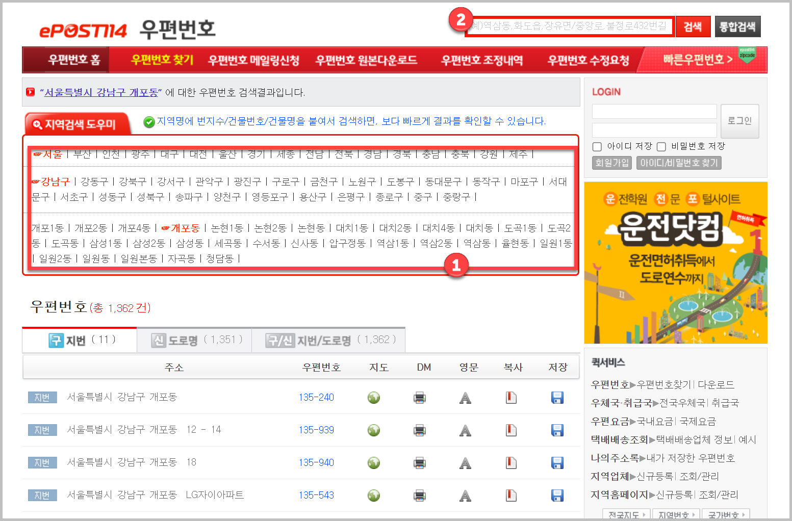 지역검색 도우미를 통해서 하나하나 찾아 들어갈수 있고요, 위에 있는 검색창에다가 입력을 해도 찾아볼수 있습니다. 그런데 이게 너무 오래된 사이트에요. ssl 적용도 안되어 있어서 https 주소가 아니네요. 언제 없어질지 모르는 곳이라고 생각하시면 될것 같아요.