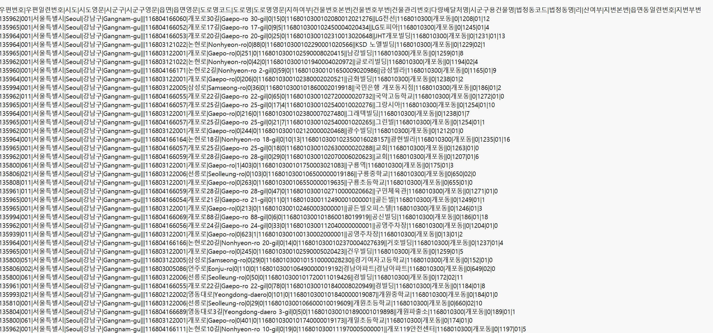 DB형태로 저장 된것도 있습니다. TXT 파일인데 엑셀에서 조금만 조정을하면 데이터를 쓸수 있도록 해놨더라고요.