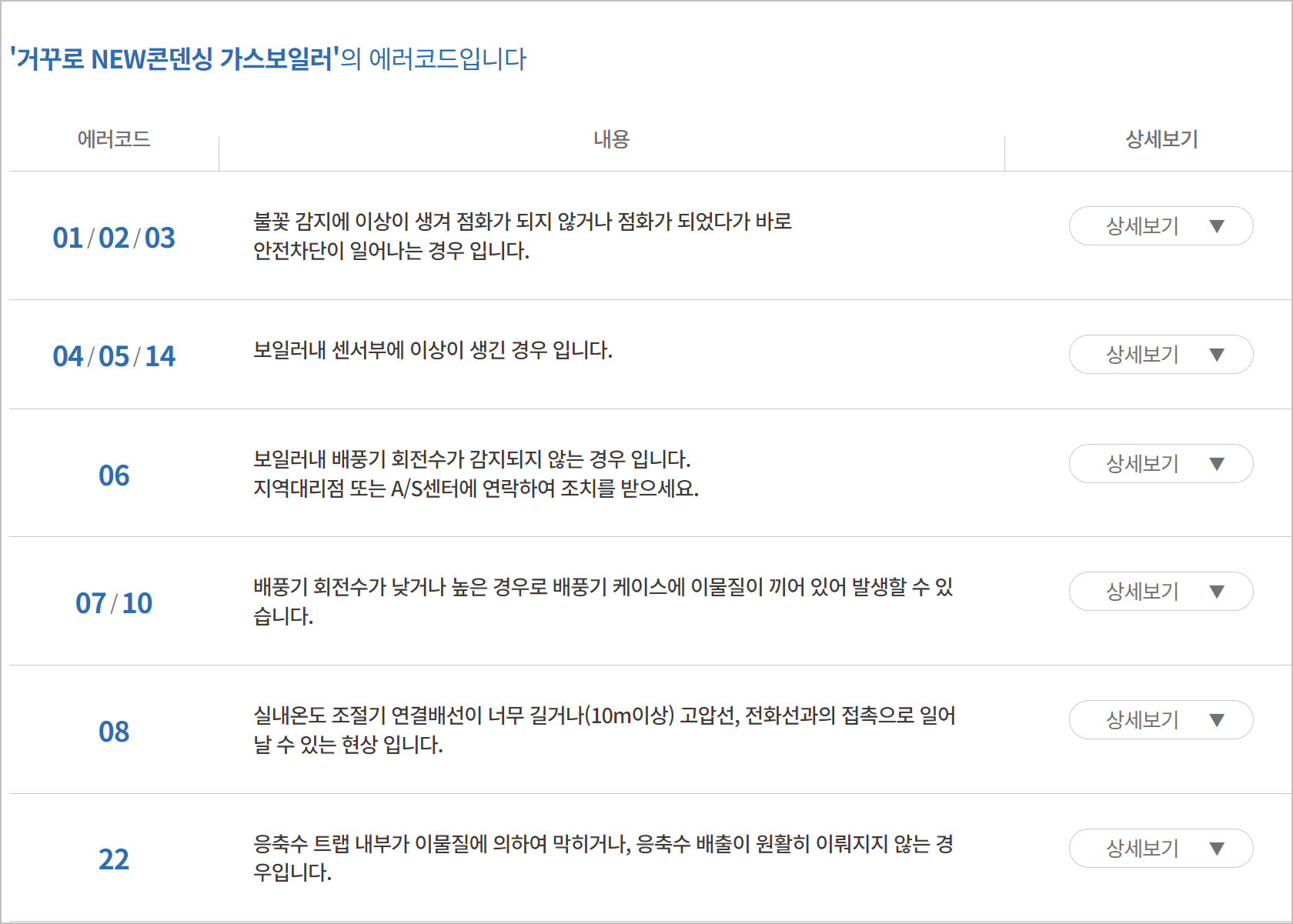 만약 에러코드가 뜨게 되면 가장 먼저 하게되는 것은 매뉴얼을 찾아봐야합니다. 그곳에는 생각보다 많은 내용이 들어있습니다. 그런데, 이것을 보관하고 있는 집은 그리 많지 않습니다. 그럴때는 홈페이지를 방문해서 해당 내용을 찾아보는 것이 가장 현명합니다.