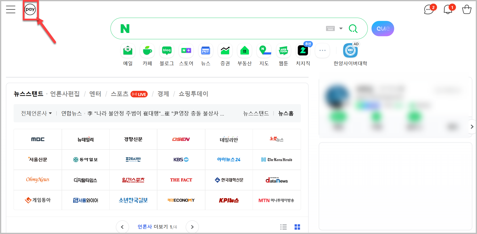 일단 왼쪽위를 보면 pay 라고 버턴이 있습니다. 이것을 클릭을 하시면 됩니다. 물론 로그인이 되어 잇는 상황에서야합니다. 만약 로그인이 안되어 있으면 로그인을 하고 하세요.