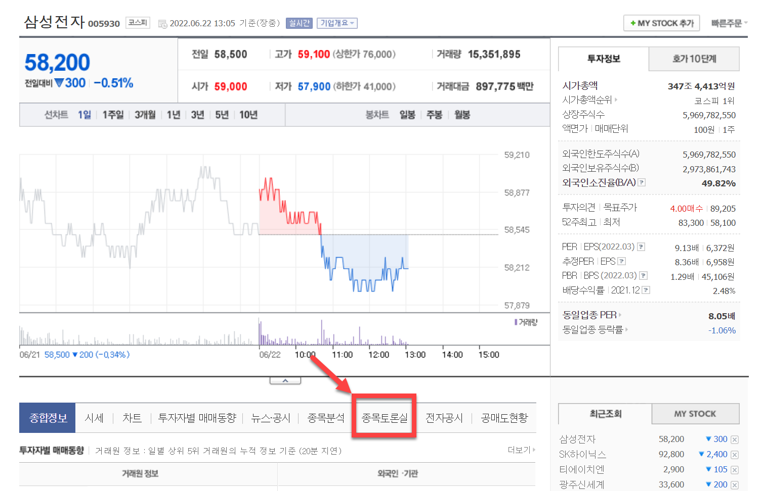 당연한 이야기 일수 있지만 이슈가되는 종목의 경우에는 더 많은 글들이 올라오게 됩니다. 꼭 그렇지 않더라도 삼성전자와 같은 종목은 언제나 활성화가 되어 있습니다.
