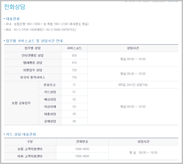 - 농협은행: 1611-3000
