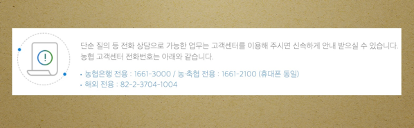 위의 번호는 NH 홈페이지에서 제공하는 전화번호입니다.