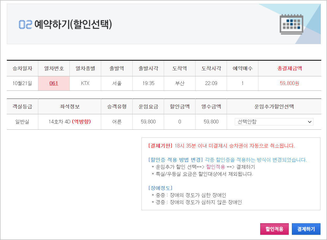 5) 최종적으로 내용을 확인한 다음에 결제하기를 진행하시면 됩니다. 그러면 최종적으로 예약이 완료가 된것입니다.