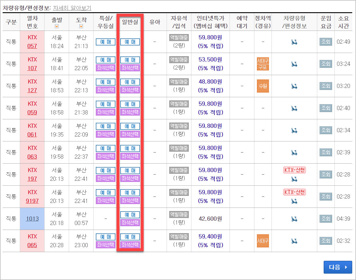 2) 그러면 위와 같은 화면이 나옵니다. 여기에서 시간을 보시고 파란색 박스를 클릭하면 됩니다.