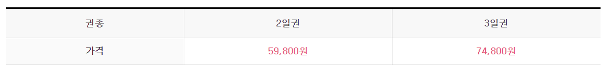 2일권과 3일권의 가격 정보가 위에 있습니다. 이용을 하고 싶은 날 7일 전부터 예매가 가능합니다. 카드로 구매를 하거나, 카드+ 현금으로만 구매를 할 수 있습니다.