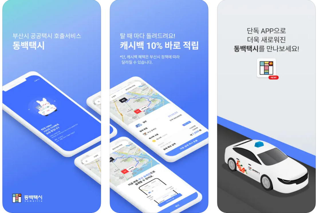 예전에는 동백전 어플에서 이용을할수 있도록 되어있지만, 요즘에는 그냥 별도의 어플로 이용을 할수 있도록 되어 있습니다. 호출후 3분이면 배차가 된다고 하는데, 뭐 카카오도 그정도, 또는 그 이상의 속도로 배차가 되는것 같아서 딱히 장점같지는 않습니다.