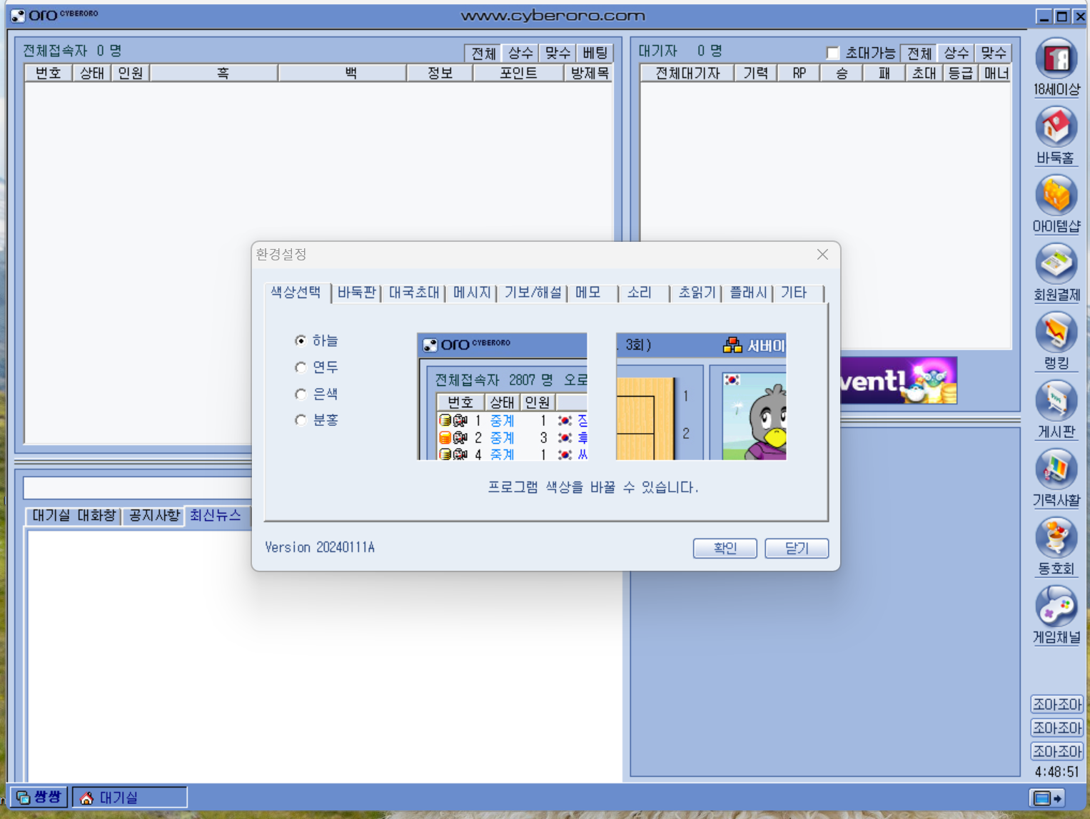 설치가 완료되면 바탕화면에 생성된 사이버 오로바둑 바로가기 아이콘을 클릭하여 프로그램을 실행합니다. 이제 대국실에 입장하여 다양한 유저들과 바둑을 즐길 수 있습니다.