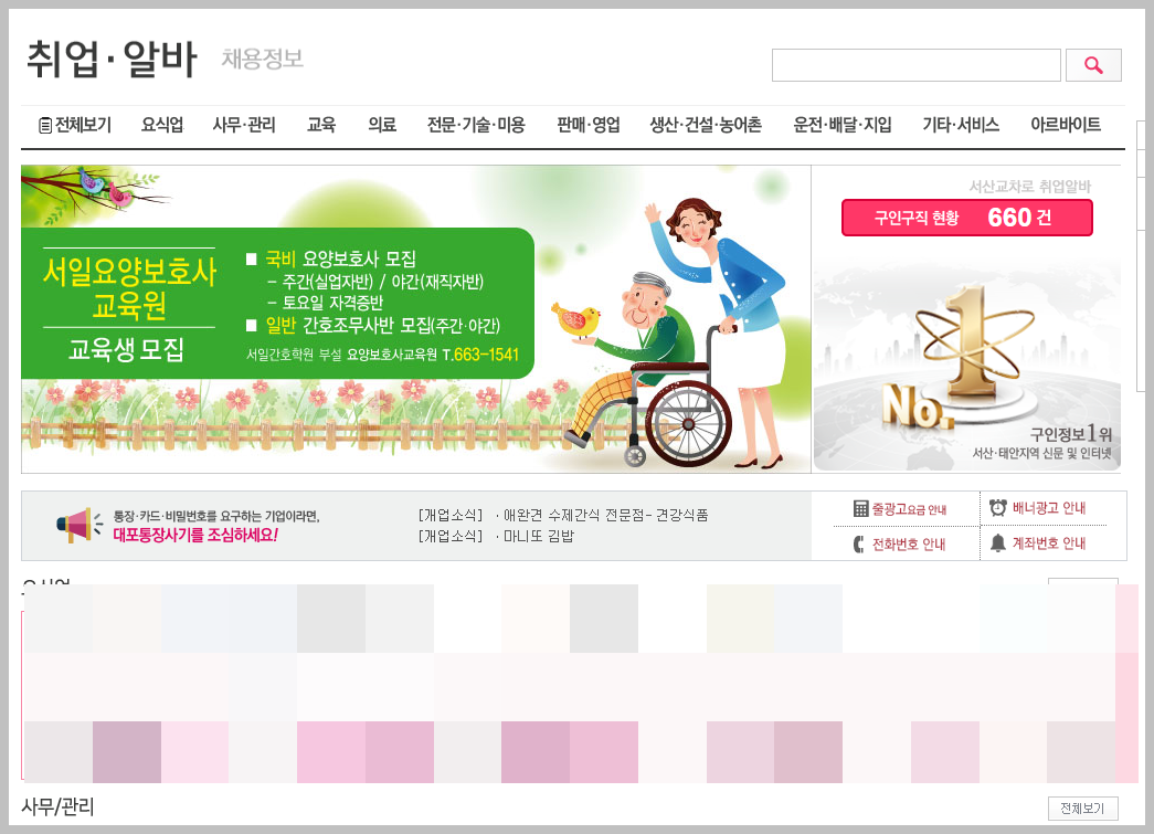 660건 정도 되는 구인구직 정보를 볼수 있으며, 분야별로 다양하게 있습니다. 직종별로 필터링이 잘 되어 있기 때문에 이를 활용하시면 원하는 정보만 빠르게 얻을 수 있습니다.