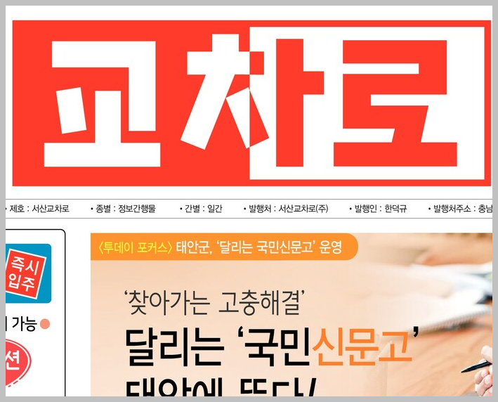 또는 위 링크를 클릭을 하시면 간단하게 서산/태안 교차로신문으로 들어가실 수 있습니다. 그리고 아래와 같은 홈페이지를 확인할 수 있습니다.