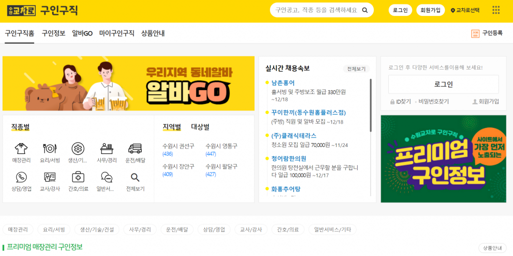 구인구직 홈페이지에서는 직종별, 지역별로 필터링이 가능하며 원하는 정보를 쉽게 찾을 수 있습니다. 다양한 구인공고가 올라와 있기 때문에 알바천국이나 다른 취업 포털의 대안으로 활용할 수 있을 것입니다.