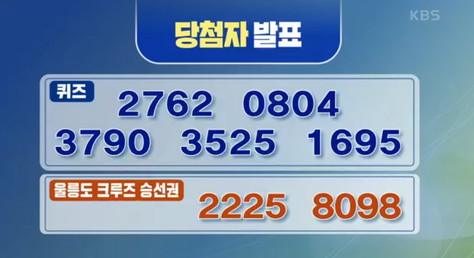 보통 퀴즈는 9시 전후에 출제가 되고, 정답공개는 방송 끝무렵이 나옵니다. 그리고 막바로 당첨자 발표가 됩니다. 티벗의 경우에는 닉네임으로 공개가 되고, ARS의 경우에는 전화번호로 공개가 됩니다. 놓치더라도 홈페이지에 들어가면 내용을 확인할수 있습니다.