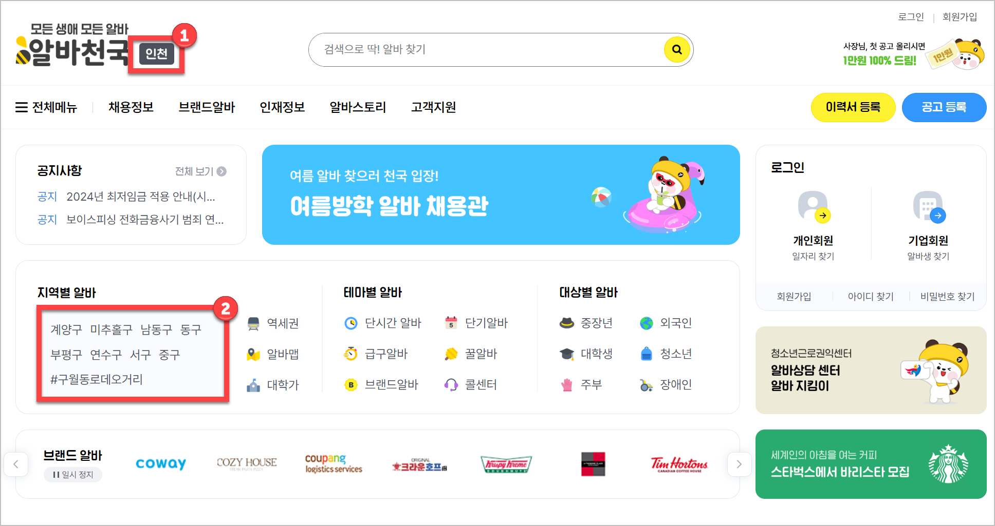 사이트에 접속하면 해당 지역의 다양한 아르바이트 정보를 확인할 수 있으며, 계양구, 미추홀구, 남동구 등 세부 지역별로도 검색이 가능합니다. 단기 아르바이트나 급하게 구하는 곳 등 특수한 조건으로 검색할 수도 있어, 자신의 상황에 맞는 최적의 공고를 찾기 매우 편리합니다.