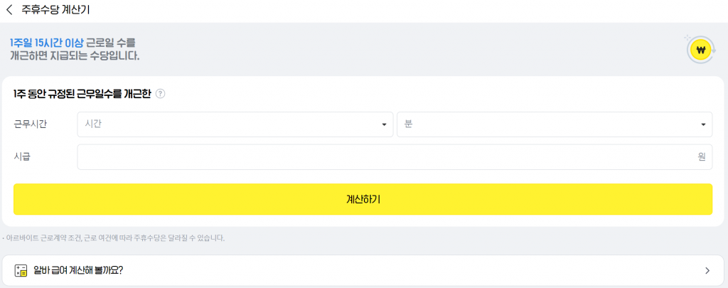 특히 1주일 동안 근무한 시간이 크게 변동하는 경우, 수동으로 구하기 어려울 수 있습니다. 오류가 생길 수도 있구요. 따라서 알바천국 계산기를 활용하면 편리합니다.