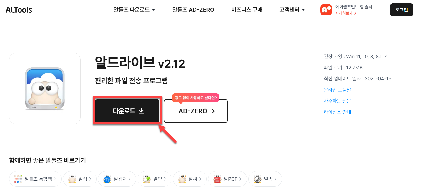 예전에는 네이버 소프트웨어에서 많이들 다운로드 하고 그랬는데, 요즘에는 그런 유틸리티 창고같은것들이 많이 없어졌죠. 그래서 공식홈페이지에서 다운로드 하는게 좋습니다. 위 링크를 클릭하시면 편리하게 이용을 할 수 있습니다.