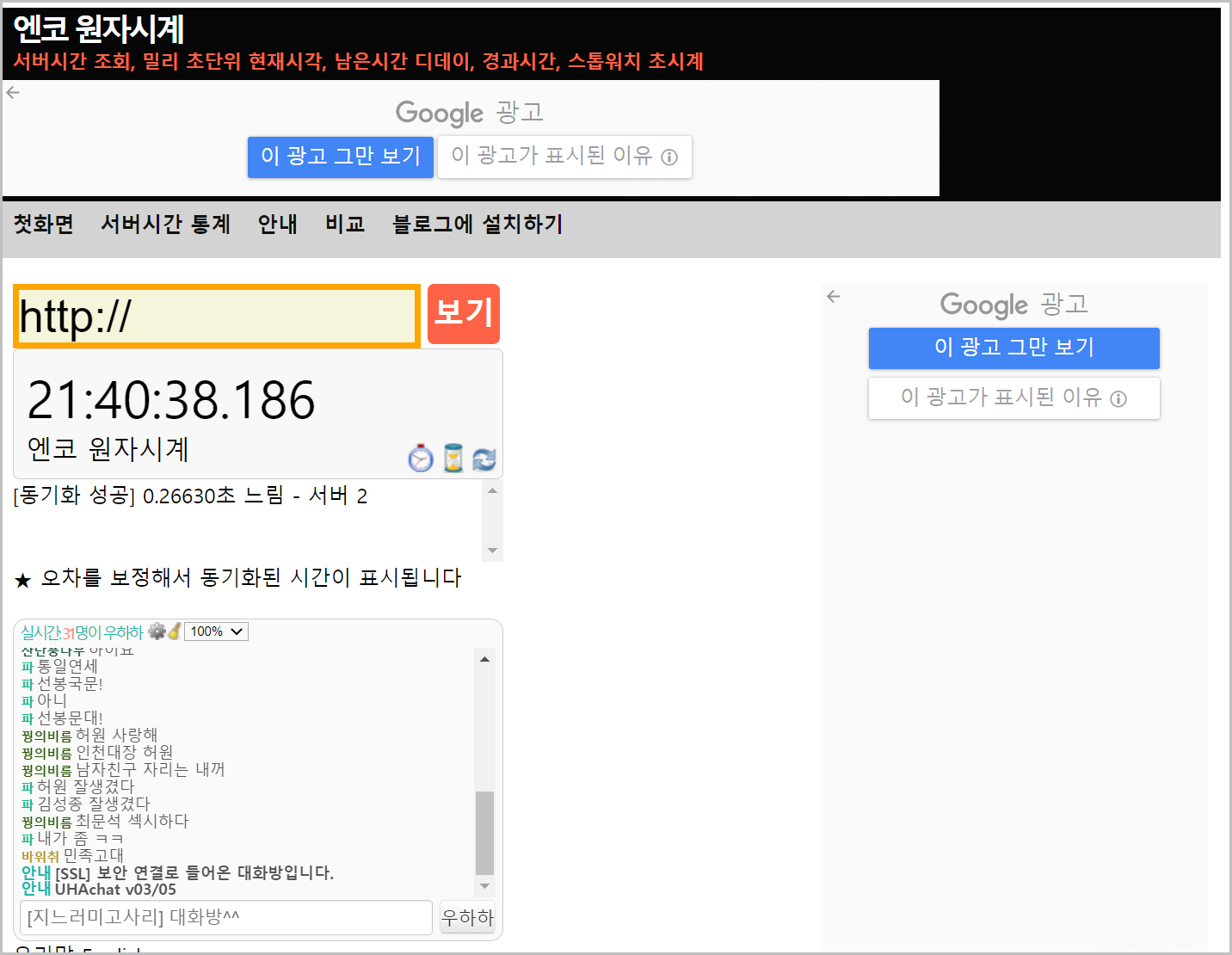 이 홈페이지가 목표로 하는것은 UTCk 라는 프로그램의 정확도를 목표로 하고 있습니다. 이 프로그램은 설치해야하는 것인데 엔코 원자시계는 설치하지 않고 홈페이지에서 이용할수 있다는것에 장점이 있습니다. 이 서비스는 수강신청이나, 티켓 예매와 같은곳에서 많은 사람들이 이용하고 있습니다.