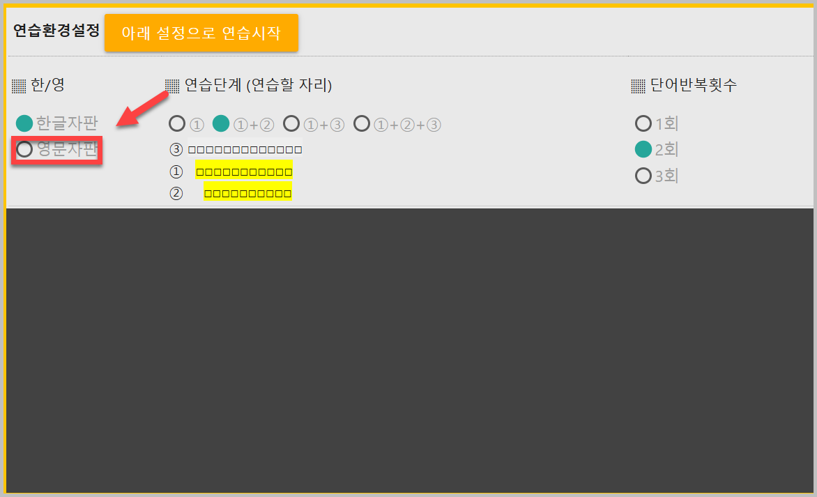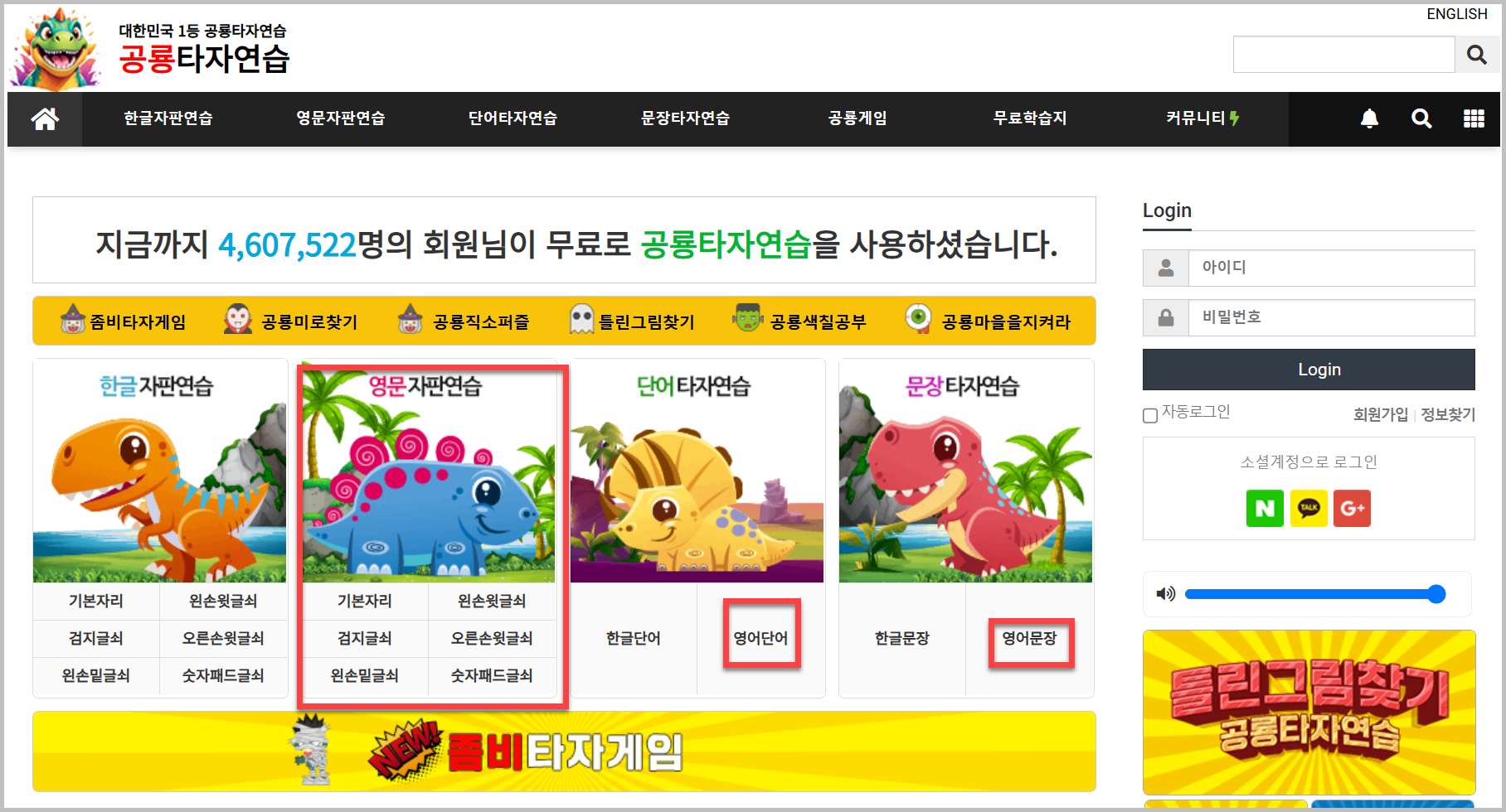 이건 좀 애들이 하기 좋은 서비스입니다. 마찬가지로 영어타자연습이 가능하도록 되었습니다.