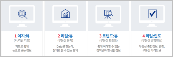 SEE: REAL에서 제공하는 토지와 주택 서비스를 정리하면 다음과 같습니다. 이지뷰, 리얼뷰, 트렌드뷰, 리얼인포로 나눌 수 있으며 이곳에서 가장 유명한 것은 이지뷰 입니다. 개인적으로 과거의 온나라지도에서 현재의 씨리얼 지도로 자주 이용합니다. 이것은 토지와 공간을 융합하여 지도로 제공하는 서비스로, 인구 이동을 확인할 수 있고 주택 유형별 거래량 등 다양한 사항들을 확인할 수 있어서 매우 유용합니다.
