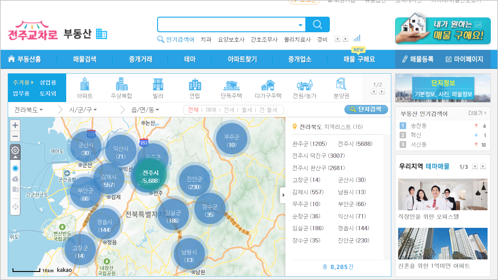 전주교차로에서는 구인구직 정보뿐만 아니라 부동산 매물 정보도 확인할 수 있습니다. 아파트, 빌라, 오피스텔 등의 다양한 매물 정보를 제공하며, 중고차, 청소, 이사 등 생활 편의 정보도 함께 제공됩니다. 부동산과 함께 지역 커뮤니티도 활성화되어 있어 현지의 다양한 정보를 얻을 수 있습니다.