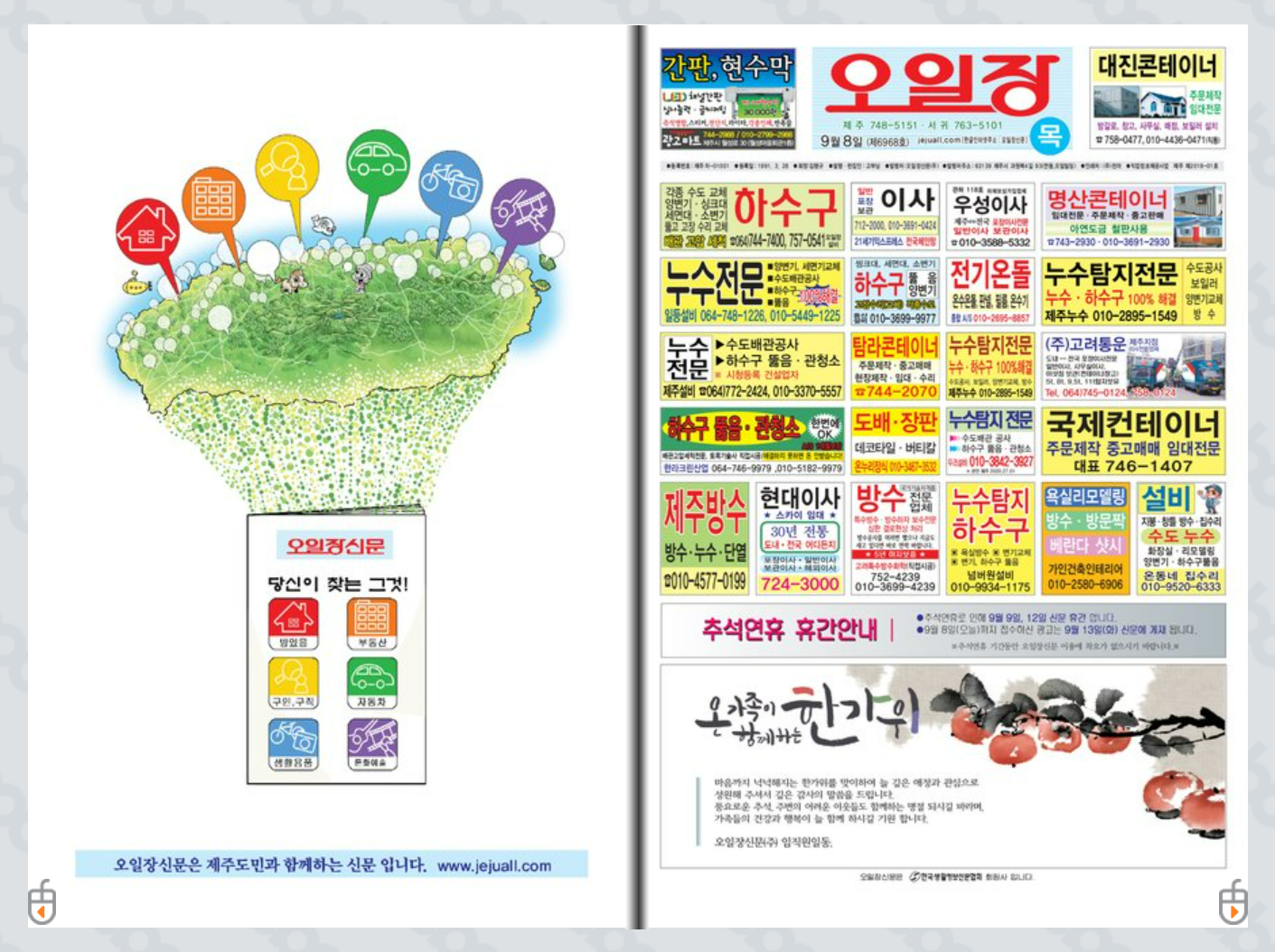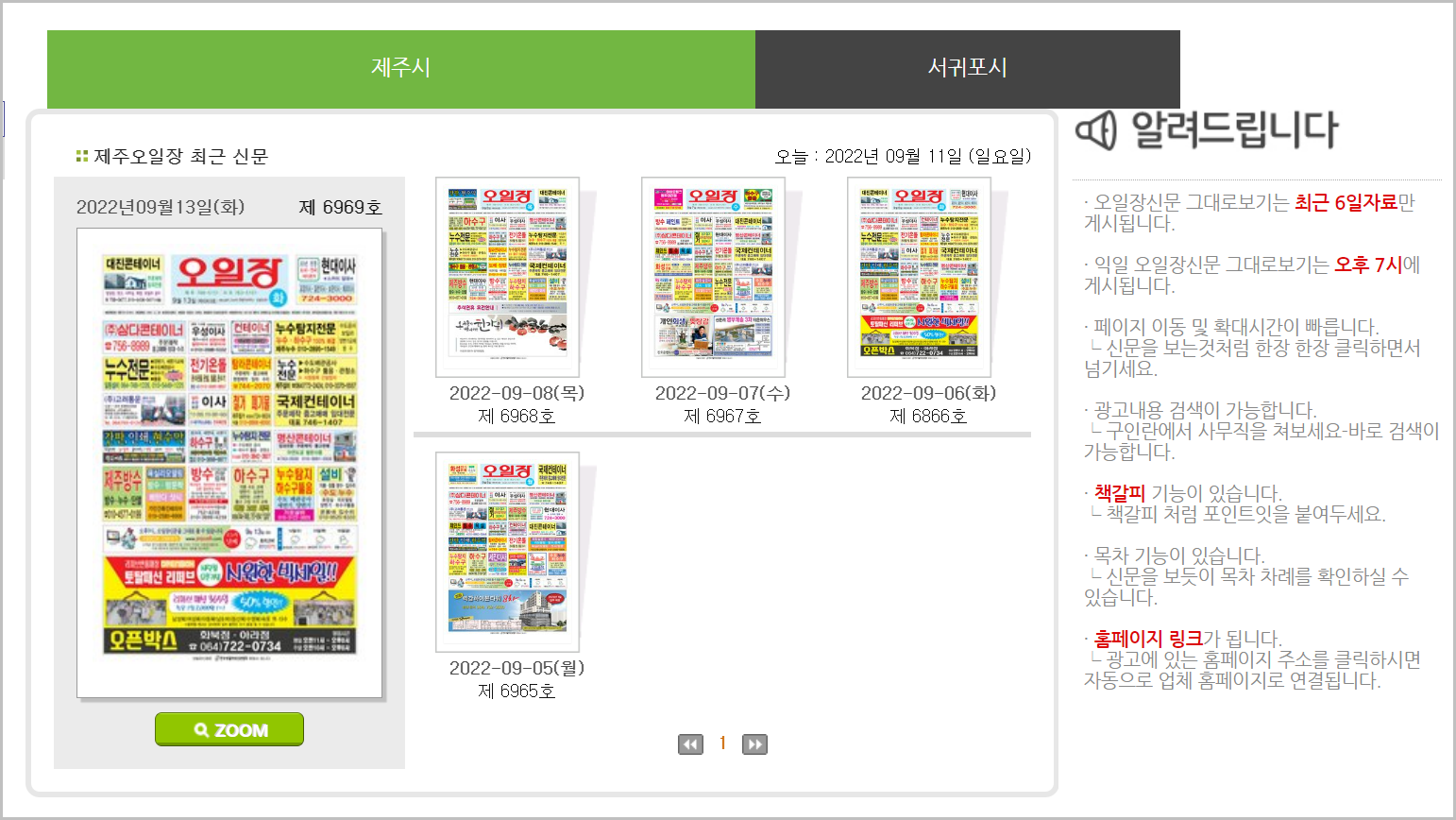 제주 오일장신문은 제주시 뿐만아니라 제주도 전역을 대상으로 하는 신문입니다. 서귀포에도 서귀포 오일장 신문이 있지만, 실질적으로는 통합이 되어 있는 상황입니다. 이 신문을 보기 가장 편리한 방법은 직접 신문을 보는것이겠지만, 홈페이지에서도 쉽게 내용을 확인할수 있습니다. 제주오일장신문그대로보기 라는 서비스를 이용하시면 됩니다.