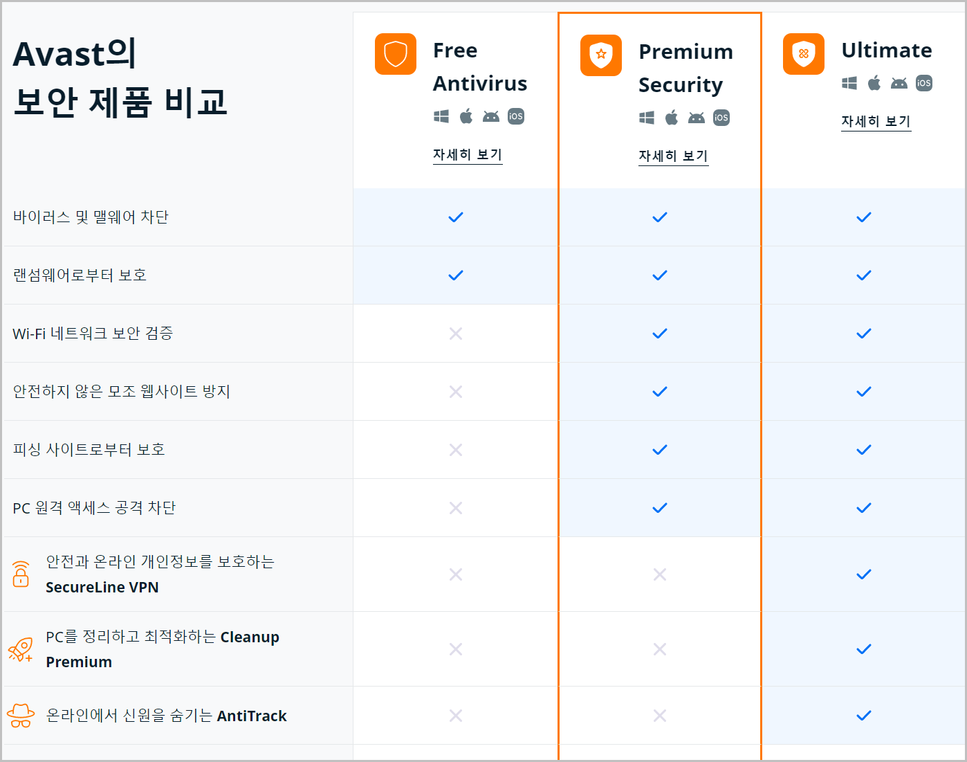 어베스트 버전은 위와 같습니다. 프리안티바이러스는 말그대로 프리이구요. 프리미엄 시큐리티가 카스퍼스키의 인터넷 시큐리티와 버전이 비슷합니다. 하지만 개인적으로는 프리미엄으로 가지 않는것을 권해드립니다. 대부분의 기능이 한국에서 제대로 작동하지 않습니다. 그냥 기분만 좋아집니다.