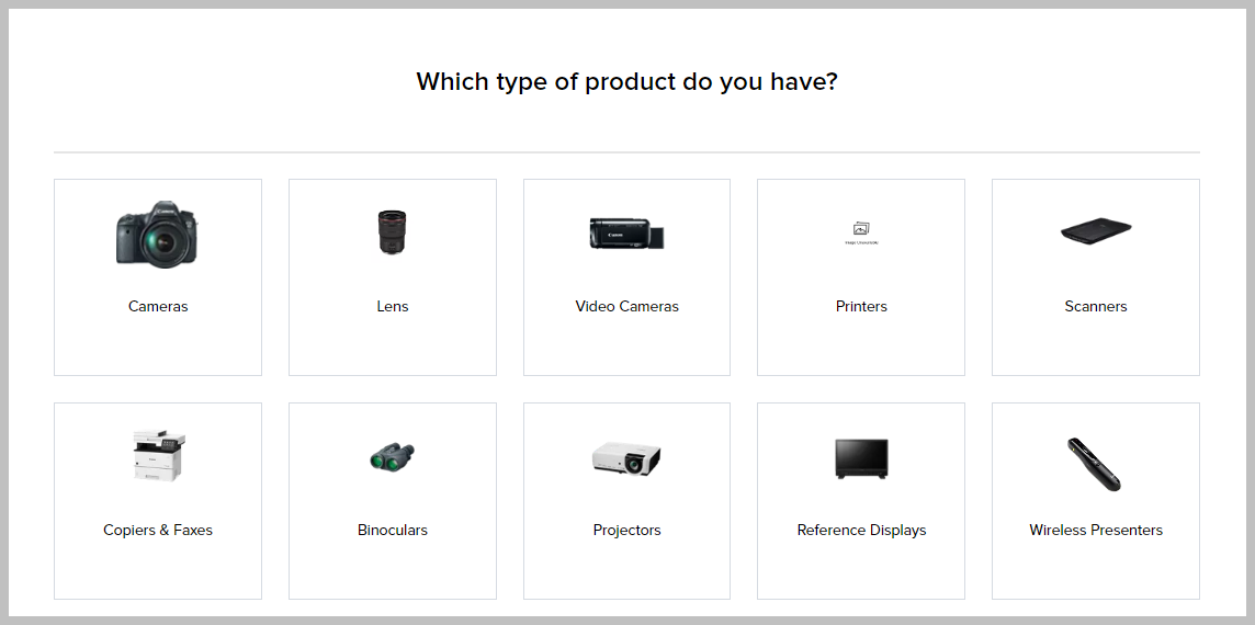 - Canon 웹 사이트를 방문하여 스캐너 모델에 대한 지원 페이지로 이동합니다.