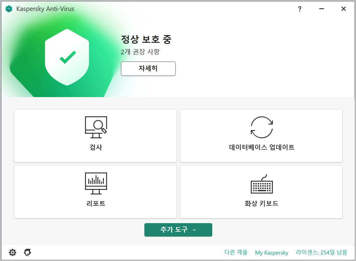 제가 사용하고 있는 프로그램입니다. 윈도우 디펜더 만으로도 충분하다는 것을 알고 있지만, 카스퍼스키의 여러가지 부가기능이 마음에 들어서 이용하고 있습니다. 보안상에 문제가 되는 상황에 경고를 주는것이 마음에 들어서 이용하고 있습니다. 카스퍼스키 프리(무료) 버전이 과거에는 존재하였지만 현재는 없습니다. 일정기간동안 무료로 체험을 할수 있는 버전만 존재합니다. 네이버에서 검색하면 저렴하게 보호받을 수 있는 제품이 있습니다.