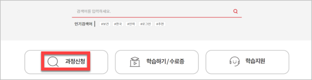 로그인을 완료한 후, 홈페이지 상단 메뉴에서 '과정신청' 항목을 클릭합니다.