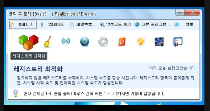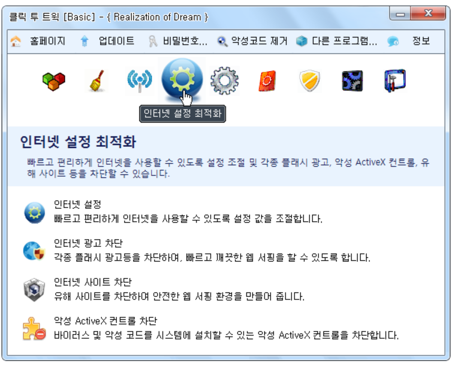 우리나라에는 최적화 툴이 굉장히 많았습니다. 우리나라 인터넷 환경이 개판이었던 탓도 있었지만, 뛰어난 개발자가 많이 있었던 탓도 있었지요. 여러 최적화 프로그램이 있었지만 그중에서 백미라고 할수 있는것은 클릭투 트윅(Click to Tweak)이라는 프로그램이었습니다.
