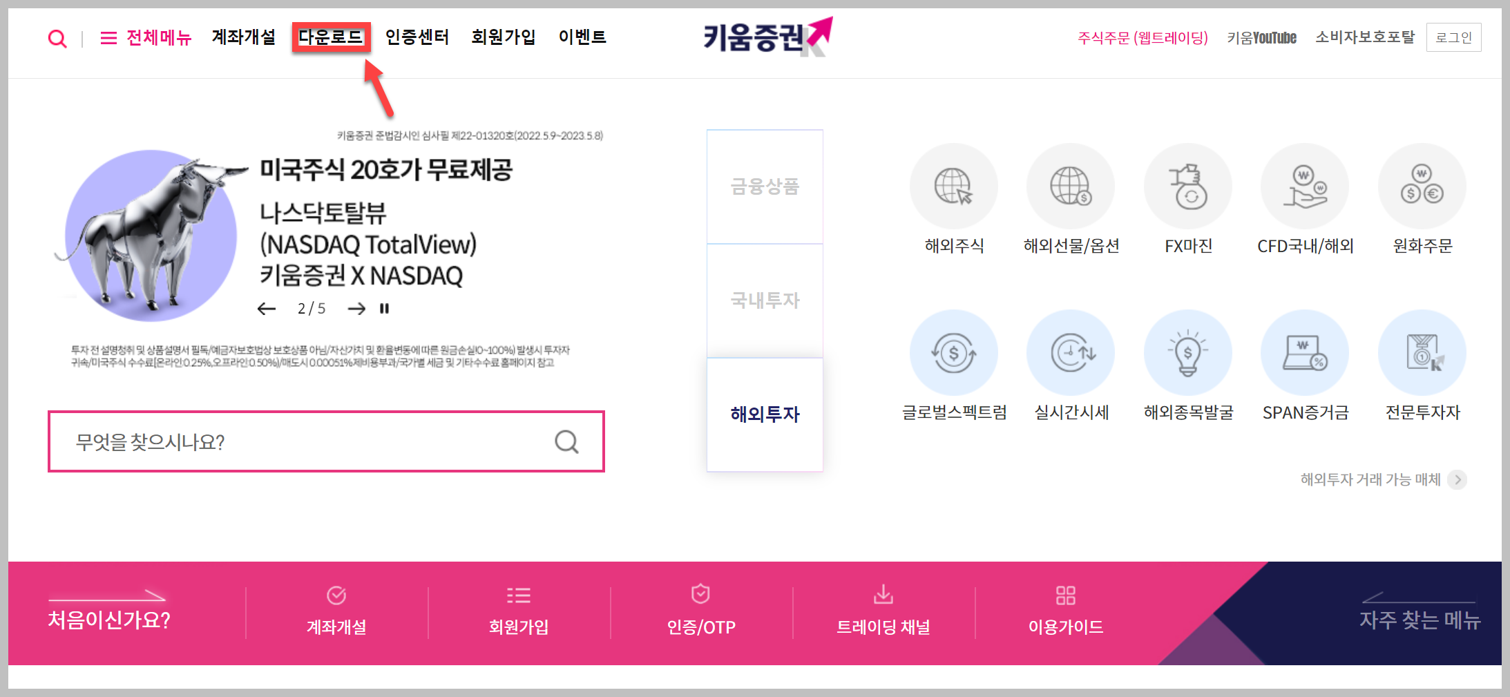 영웅문 HTS 다운로드 방법은 (당연히) 홈페이지에서 다운로드 해야합니다. 과거에는 홈페이지가 진짜 복잡 해서 다운로드 페이지를 찾는게 힘들었는데 요즘에는 쉽게 찾을수 있더군요