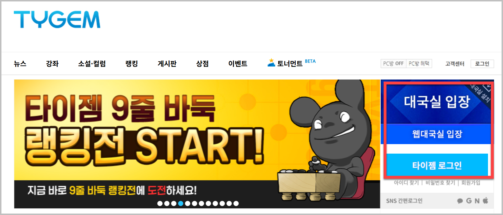 타이젬 바둑 대국실을 이용하기 위해서는 일단 공식홈페이지에 접속을 해야합니다.