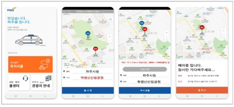 또한, 파주의 지형과 특성상 짧은 거리를 운행하는 택시가 적습니다. 파주콜택시는 대부분 장거리 운행을 선호하므로 이 점을 고려하고 택시를 호출해야 합니다.