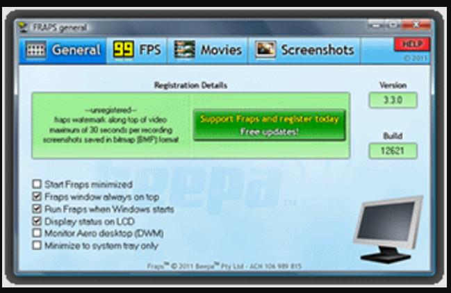 여기로 들어가시면 Fraps를 다운로드 할수 있습니다. 설치하는 것은 그렇게 어렵지 않기 때문에 별도로 설명하지는 않겠습니다.