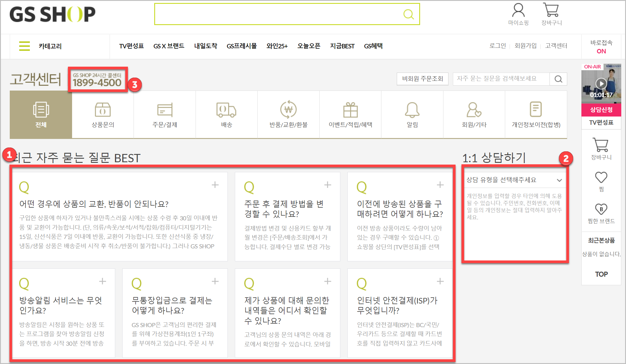 2) 1:1 상담을 할 수 있습니다. 하지만 상담을 하기위해서는 로그인을 해야합니다. TV 홈쇼핑으로 구매한 사람이 상담을 위해서 로그인을 하기엔 조금은 귀찮습니다.